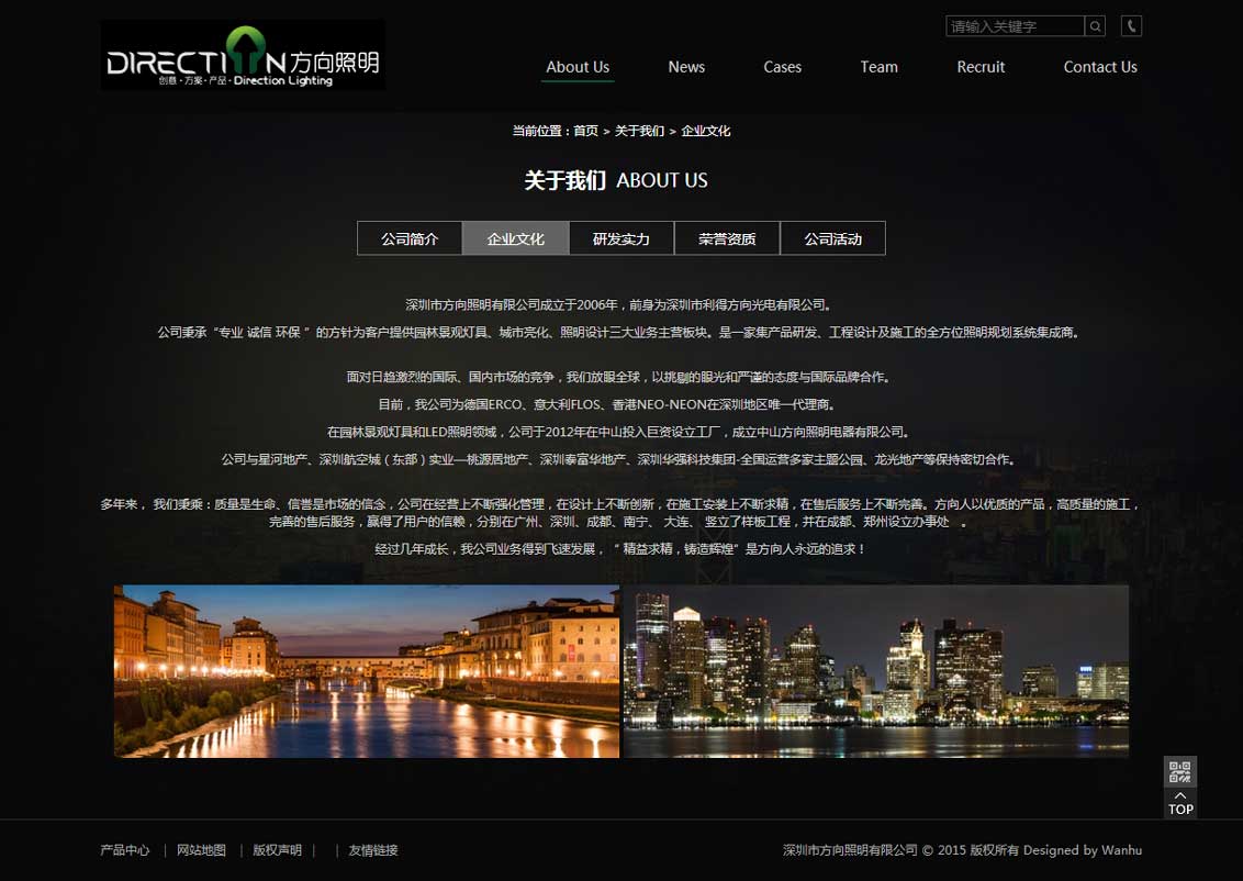 ??深圳市方向照明有限公司成立于2006年,前身為深圳市利得方向光電有限公司。公司秉承“專業(yè) 誠信 環(huán)保 ”的方針為客戶提供園林景觀燈具、城市亮化、照明設計三大業(yè)務主營板塊。是一家集產品研發(fā)、工程設計及施工的全方位照明規(guī)劃系統(tǒng)集成商。